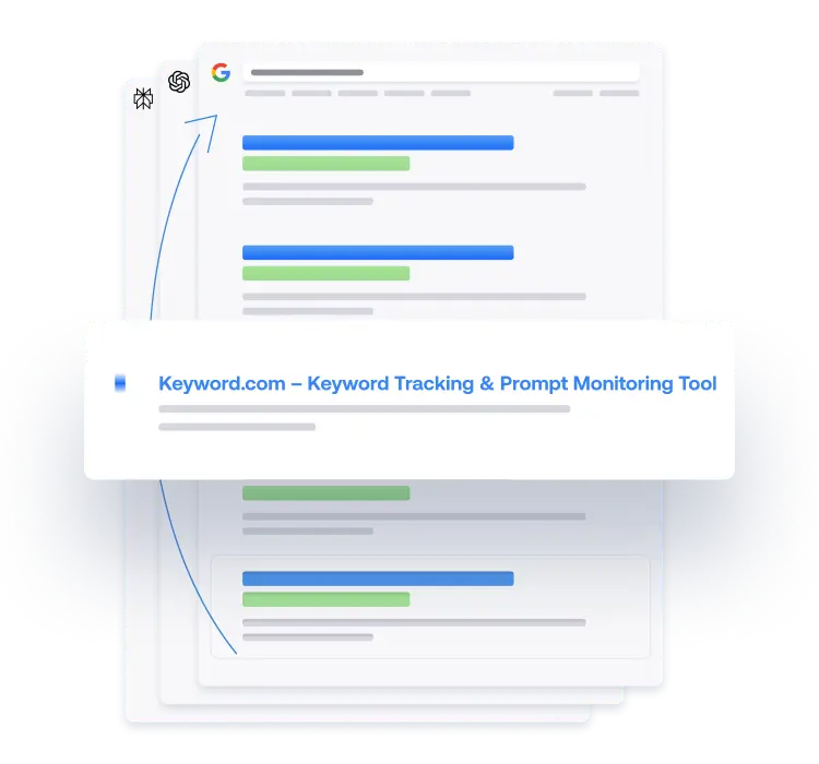 Keyword.com lets you track your brand’s visibility across AI platforms like ChatGPT, Perplexity, Gemini, and Claude, providing insights into rankings, competitor performance, and opportunities to optimize your AI search presence.