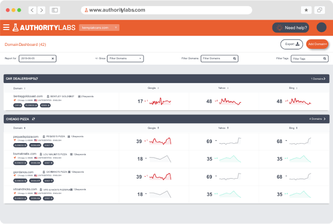 Authority Labs hat eine schlichte, einsteigerfreundliche Oberfläche für einfaches Keyword-Tracking und Reporting — ist aber recht basic.