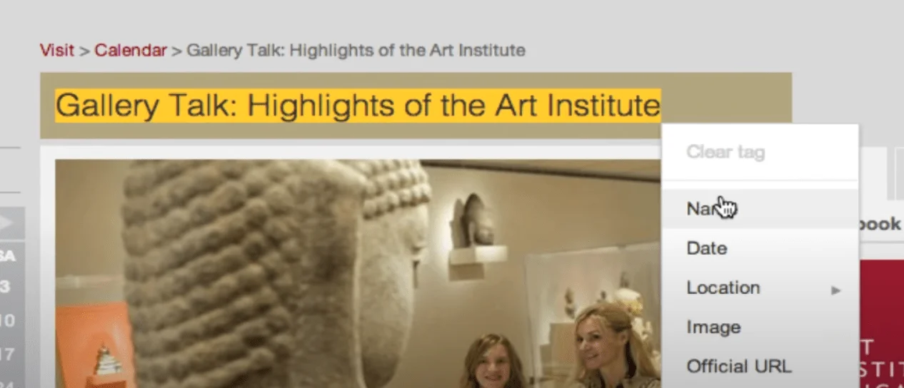 - Google Data Highlighter — Le Google Data Highlighter fait partie de la Google Search Console. Pour l’utiliser, il vous suffit d’entrer l’URL de votre page de destination, puis de mettre en surbrillance des sections spécifiques de la page, comme vous le feriez dans un document Word. Par exemple : Après avoir mis en surbrillance le titre de votre article de blog, vous pouvez cliquer avec le bouton droit de la souris sur le texte et l’étiqueter « Titre ». À partir de ce moment, Google saura que c’est là qu’il peut trouver le titre de votre article de blog.