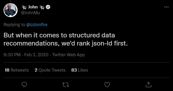 Et comme nous l’avons suggéré précédemment, essayez d’utiliser le format JSON-LD à la place des autres.